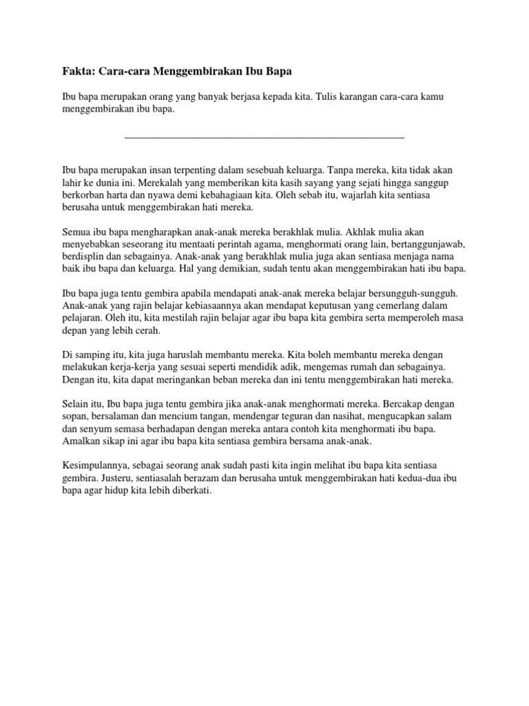 Sebagai ibu bapa mereka akan menentukan apa yang terbaik untuk anak-anak. Contoh Karangan Cara mengenang jasa ibu bapa. CONTOH KARANGAN BAHAGIAN A SPM.